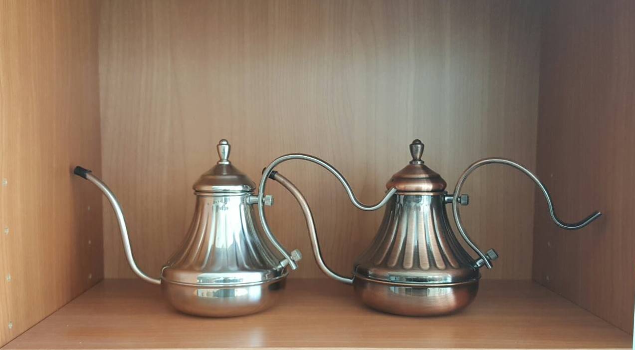 不鏽鋼宮庭壺,手沖咖啡質感代表首選。各式手沖壺歡迎來店/電參觀選購相關配件。